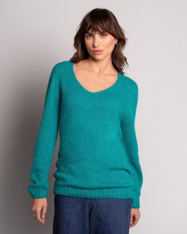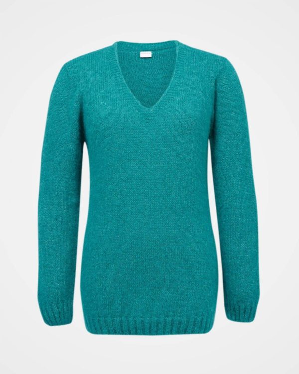 Celtic & Co Alpaca Blend Slouch V Neck Jumper Sea Green | Women Knitwear