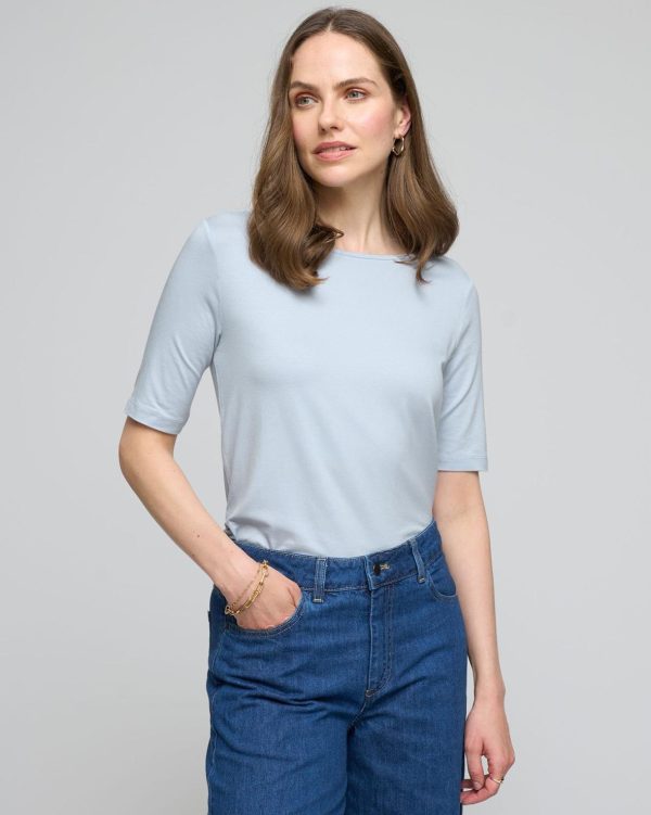 Celtic & Co Boat Neck 1/2 Sleeve T Shirt Pale Blue | Women Tops