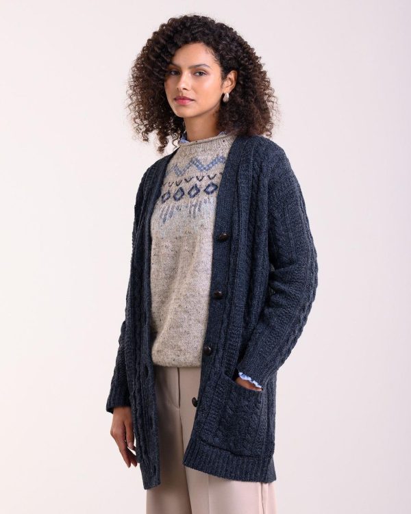 Cut to a relaxed fit for throw-it-on appeal, the cable boyfriend cardi takes a classic menswear piece and re-spins it with an intricate cable structure in super-soft wool for a touch of femininity.