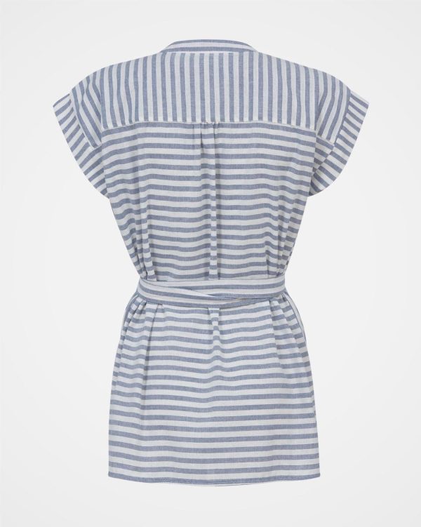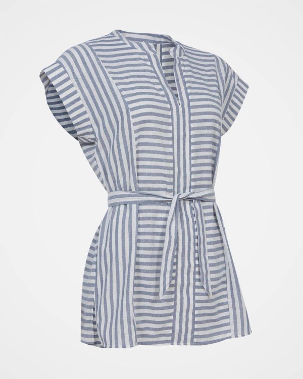 The Cutabout Stripe Tunic has an effortless, loose fit that can be pulled in at the waist for a more fitted look. The natural fabric feels soft on skin and breathable. The notch neck detail is complimented by a small stand collar, and grown on sleeves add slight coverage. Finishing below the hip, this top pairs perfectly with our Celt Shorts and Celt Trousers.