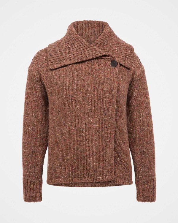 Crafted entirely from Donegal wool, this cardigan boasts a statement collar neckline and wrap-over front fastening with Corozo buttons.