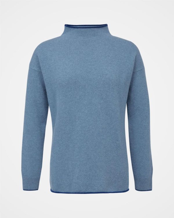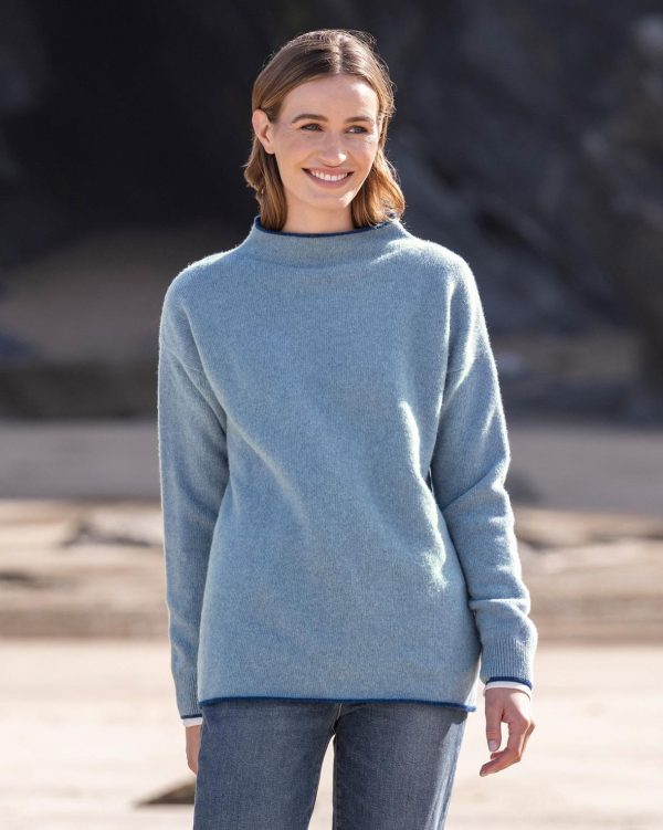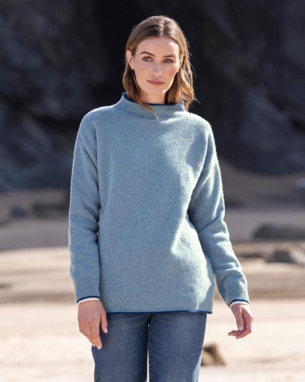 Celtic & Co Felted Funnel Neck Jumper Vintage Blue / Blue Ink | Women Knitwear