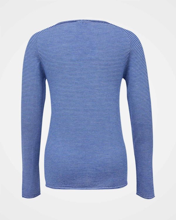 Celtic & Co Fine Knit Merino Crew Neck Jumper Cobalt Microstripe | Women Jumpers