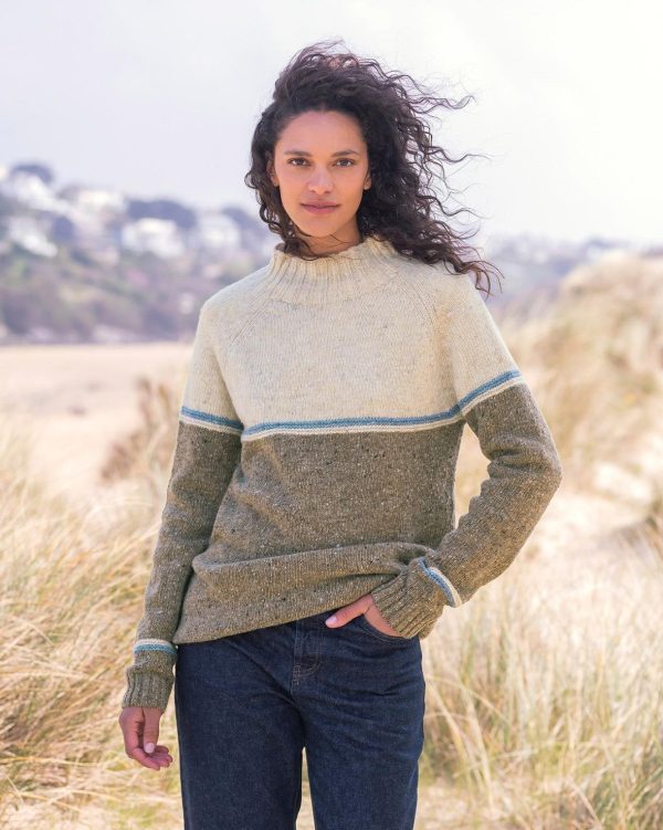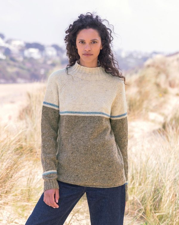 Celtic & Co Flecked Funnel Neck Jumper Oatmeal Colourblock | Women Jumpers