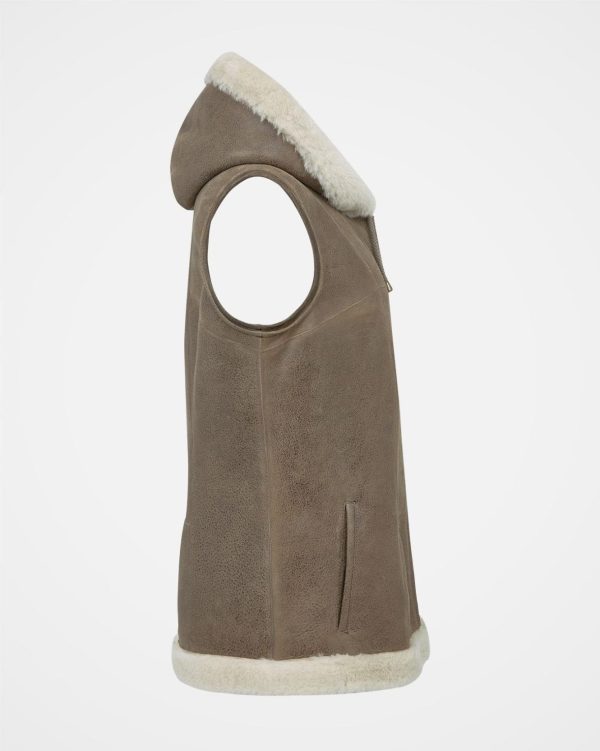 A stylish and practical piece for the colder seasons, our hooded sheepskin bodywarmer has a classic hip length, straight body fit. It’s sleeveless design allows for more manouverability whilst still keeping your core toasty. Features include a cosy, sheepskin lined hood with cotton cord drawstring ties, a chunky front zip, welt side pockets and turn back facings around the hood and hem edge to show off the curly wool. Wear over a thin layer on milder days or pair with a knitted jumper for extra winter warmth.