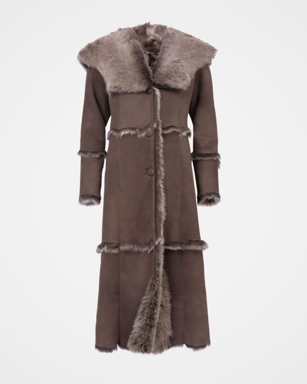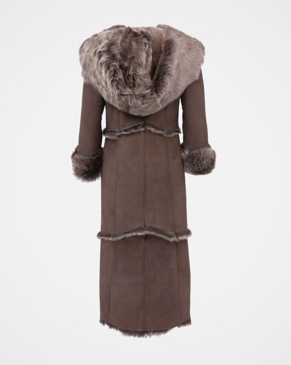 We’ve crafted it in 100% Toscana sheepskin for an elegant drape, with the long wool peeking out at the panelling, collar and hood.