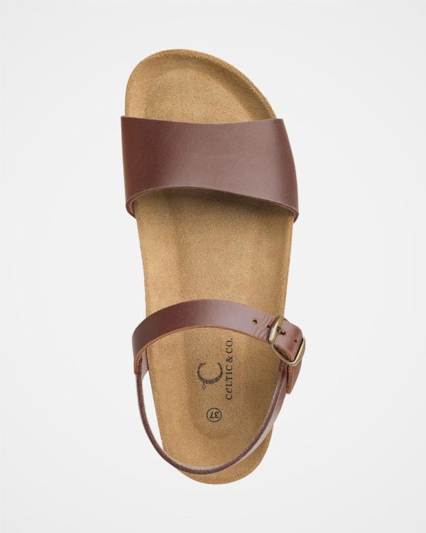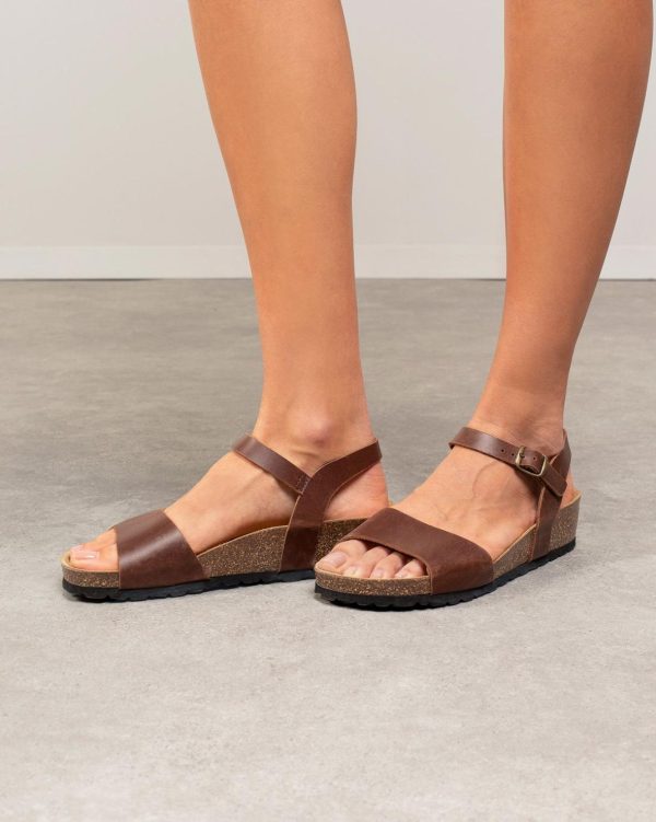 These two-part strap sandals feature a buckled ankle strap and a comfortable low wedge moulded cork sole. With a recycled material outsole, they provide a stylish and considered option for warm-weather outings.