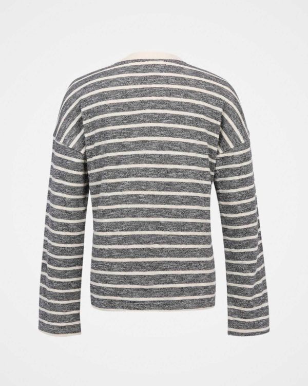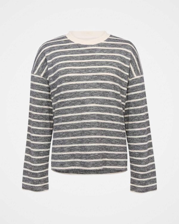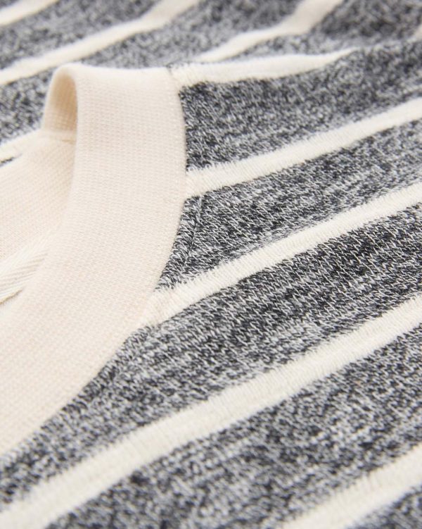 This sweatshirt features a crew neckline, drop shoulder, and ribbed trims. Its cotton marl stripe design offers a relaxed, boxy fit for casual comfort.