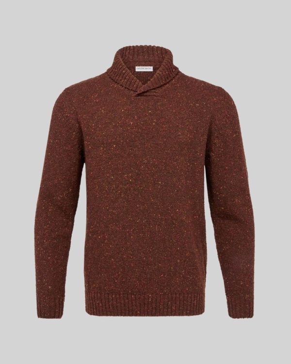 Topped with a shawl collar for a cosy feel in chilly conditions, our jumper is crafted in Genuine Donegal wool to give it the inherent flecks that set the yarn apart.