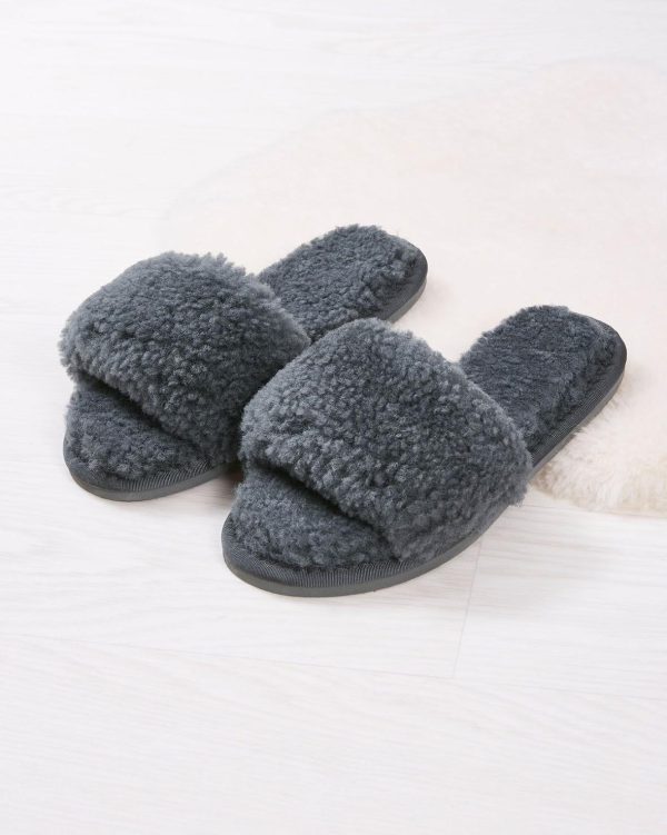 Celtic & Co Sheepskin Slides Dark Grey | Women Sheepskin Slippers