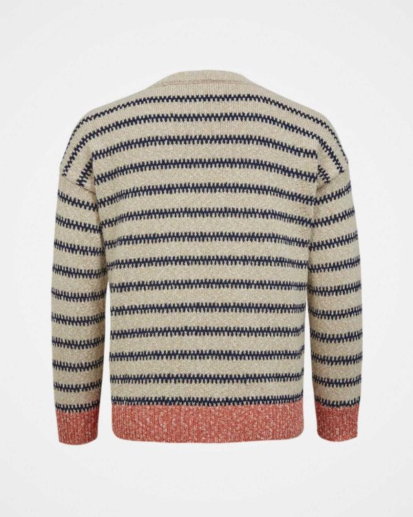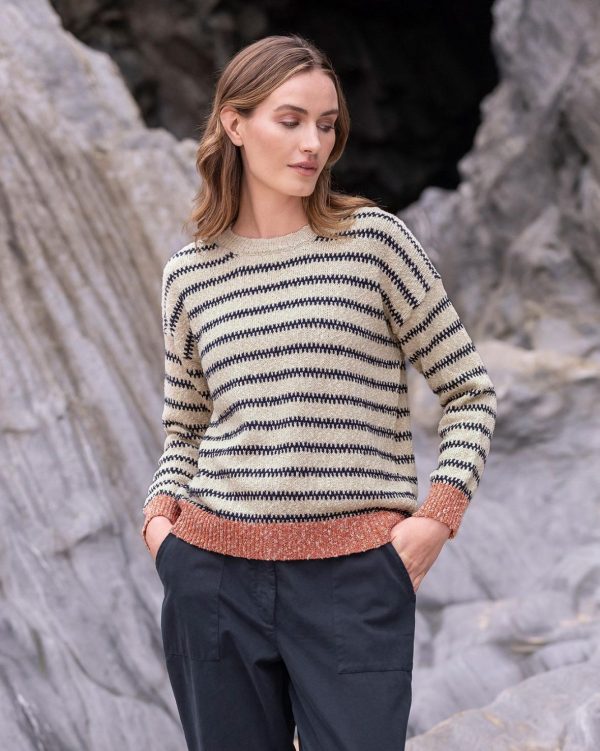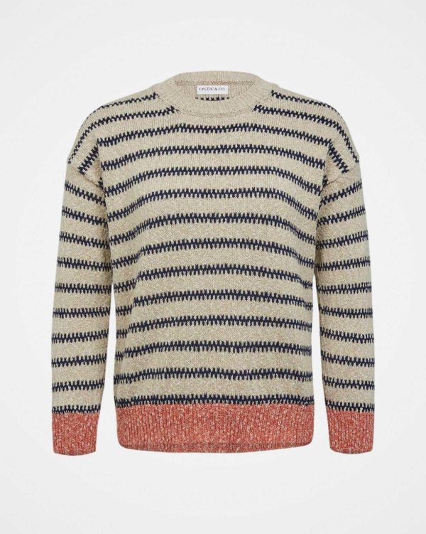 Celtic & Co Slub Cotton Crew Neck Jumper Oatmeal Stripe | Women Jumpers
