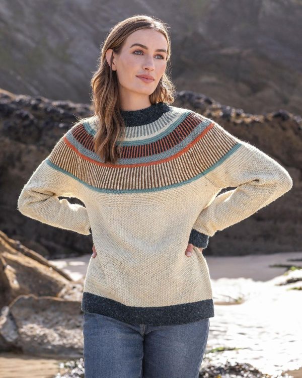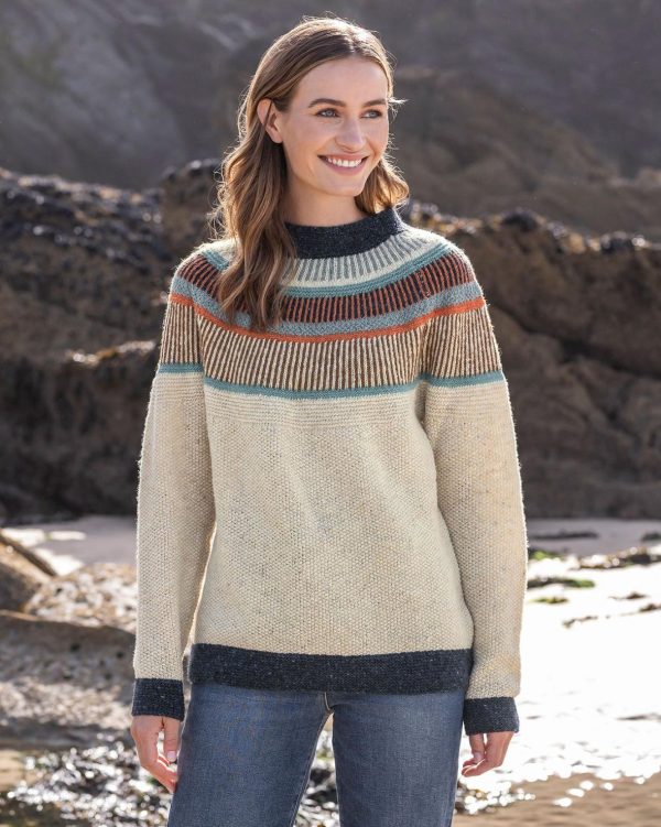 Featuring colourful patterns at the yoke, and solid accents at the hem and cuffs, it’s packed with rugged personality and makes a toasty layer for bracing walks along the coast.