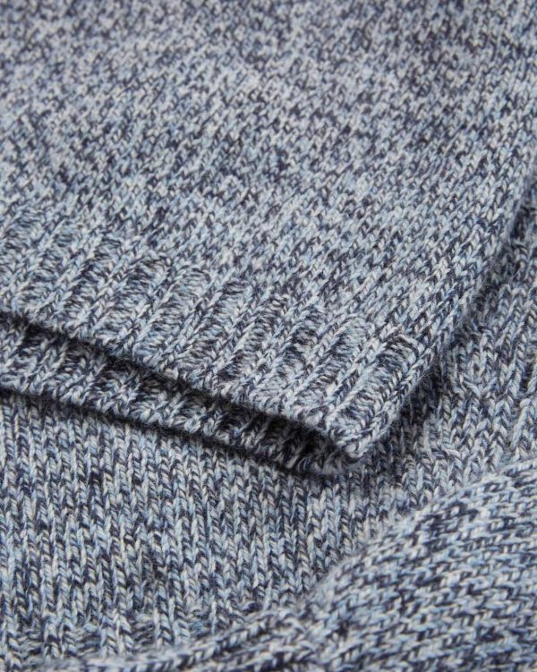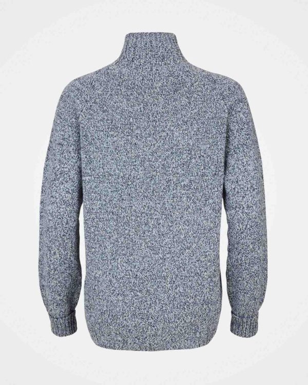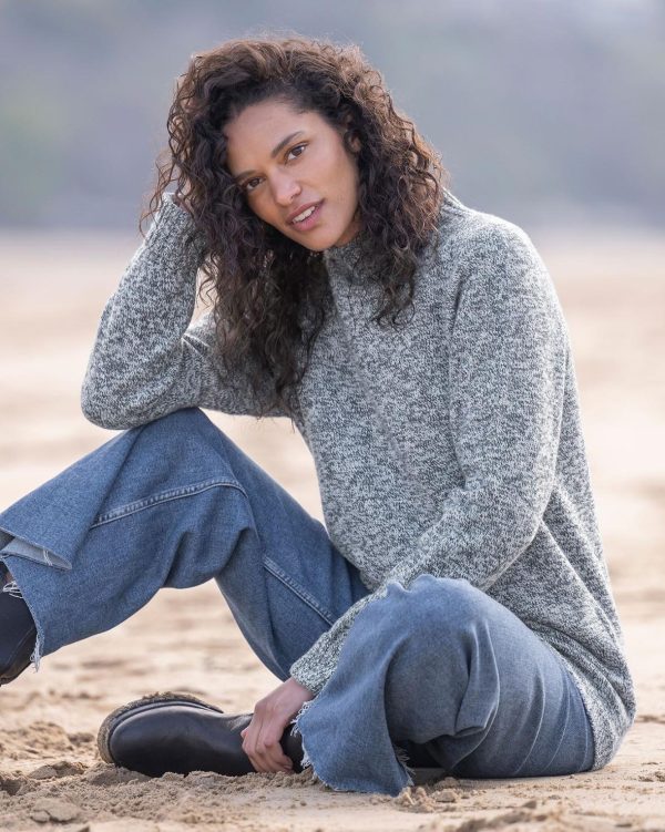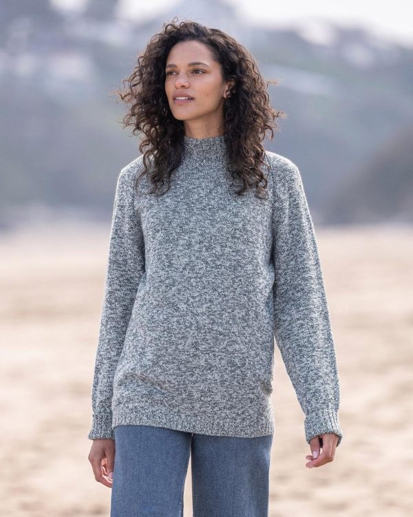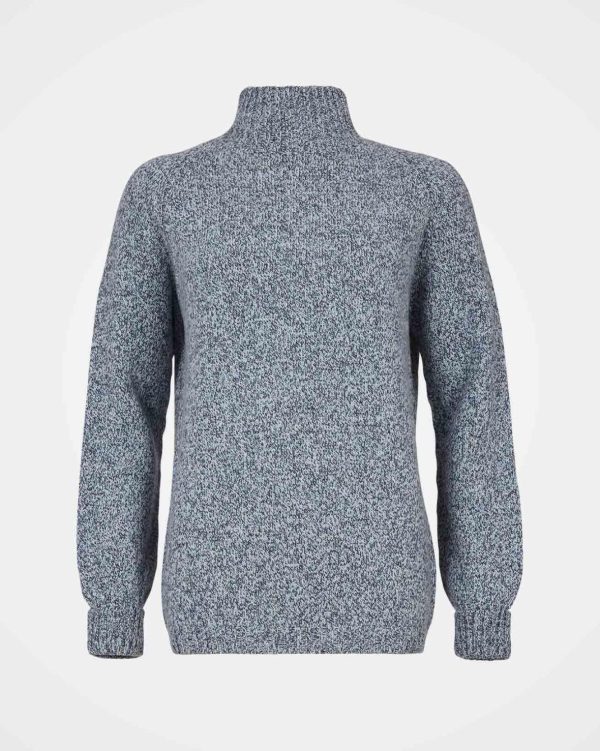 Topped with a funnel neck for a modern silhouette, this midweight jumper features ribbed accents at the collar, hem and cuffs. The yarn is a twisted combination of different shades, giving a richly coloured, textured effect.