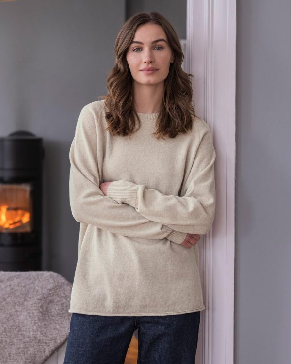 Cut to a slouchy shape, our core Geelong jumper style has been updated with an easy-to-wear crew neckline for more versatility and wearability throughout the seasons. Featuring ribbed cuffs and our signature cast-off rolled hem, this jumper is created to be lived in. Perfect for days in the garden, relaxing inside or an evening on the beach.
