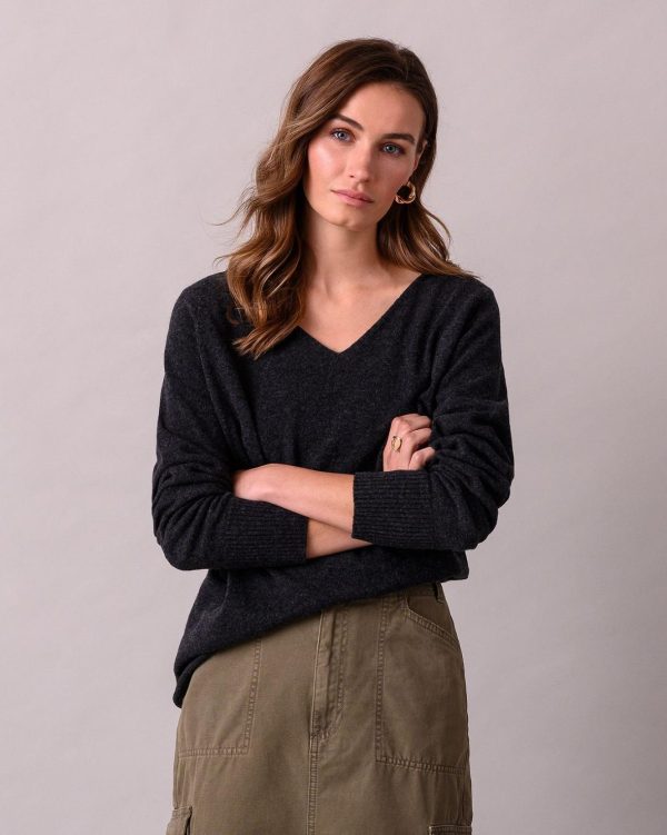 Designed with a relaxed slouchy silhouette, our signature Geelong sweater features an updated V-neckline that offers exceptional versatility for year-round wear. The thoughtful design includes ribbed cuffs and our distinctive cast-off rolled hem for a polished finish. With its comfortable loose fit, this classic sweater layers beautifully over shirts and transitions effortlessly from cozy weekends to professional settings.