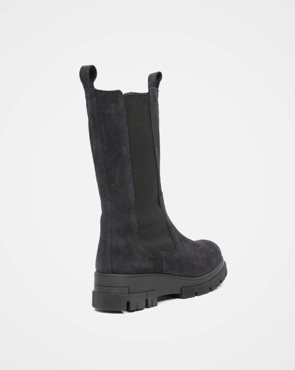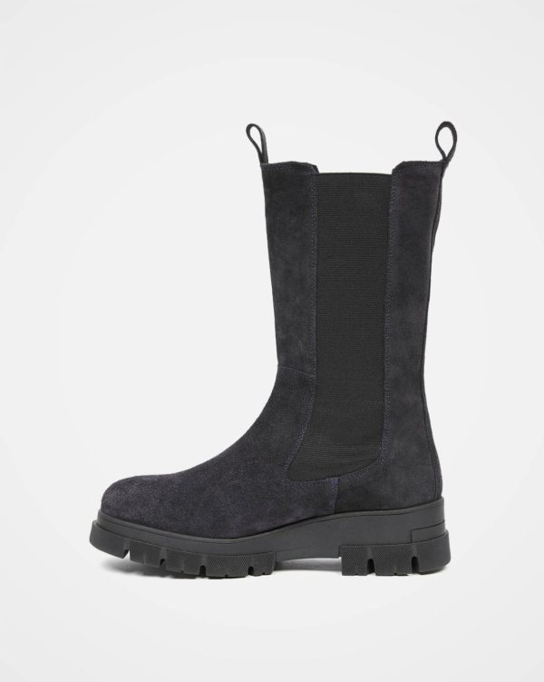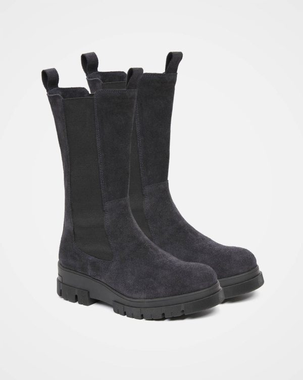 Celtic & Co Women’s Dark Navy Chunky Tall Chelsea Boots | Leather Mid-Calf Boots