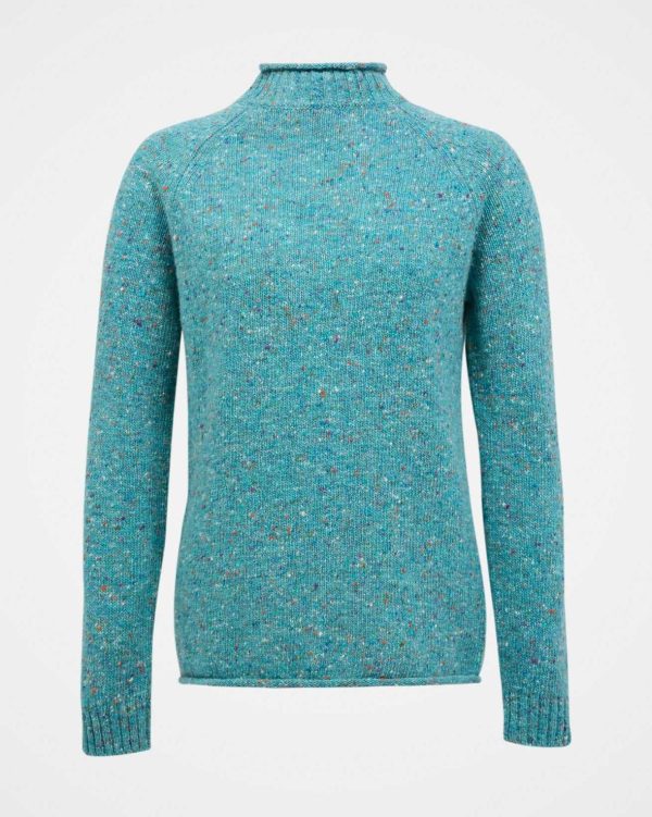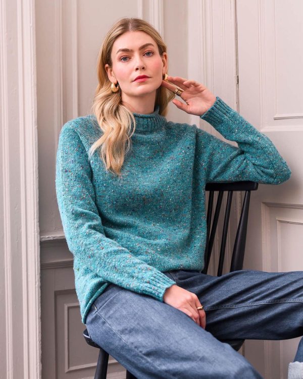Experience exceptional warmth with this beautifully crafted sweater featuring a timeless silhouette that highlights the distinctive flecks and texture of premium Donegal wool. Designed with a fisherman-inspired mock neck collar and raglan sleeves for superior comfort and mobility. The ribbed cuffs and hem provide a clean, straight fit that layers effortlessly with your favorite pieces.