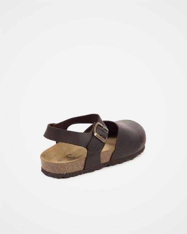 Experience exceptional comfort and style with our closed toe design that provides superior support and protection for your summer adventures. These elegant sandals feature a practical adjustable ankle strap with a secure buckle closure for your perfect fit. Crafted from premium waxed leather that offers lasting durability, these sandals are built on our signature flat, moulded cork footbed and lined with plush suede for all-day comfort. The durable rubber outsole ensures reliable traction on any surface.