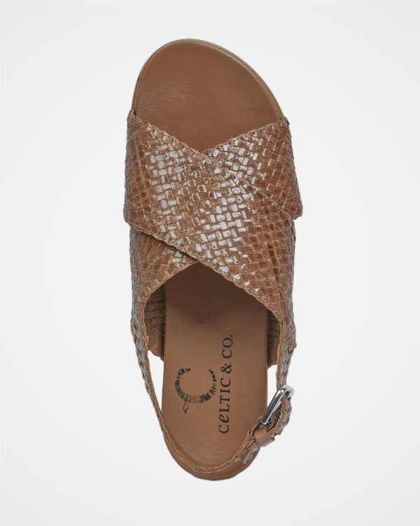 Celtic & Co Women’s Leather Woven Crossover Sandals – Brown