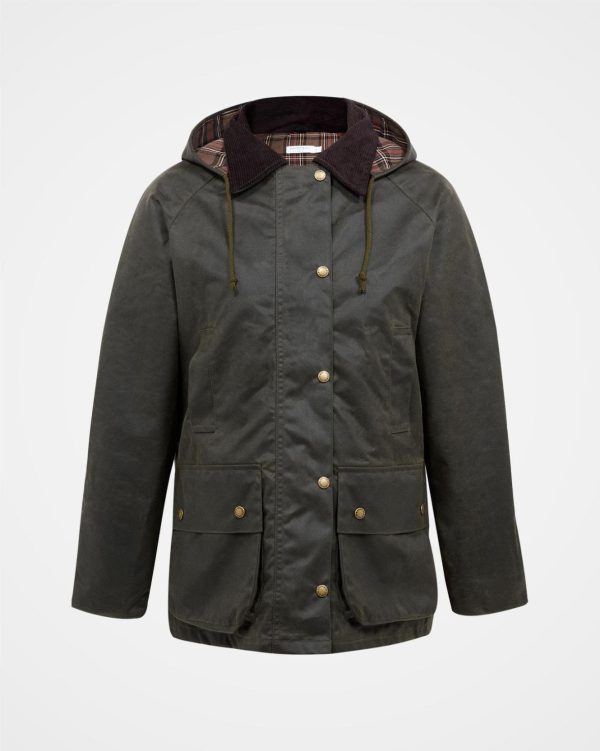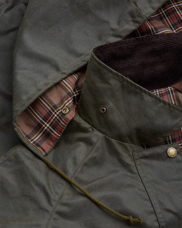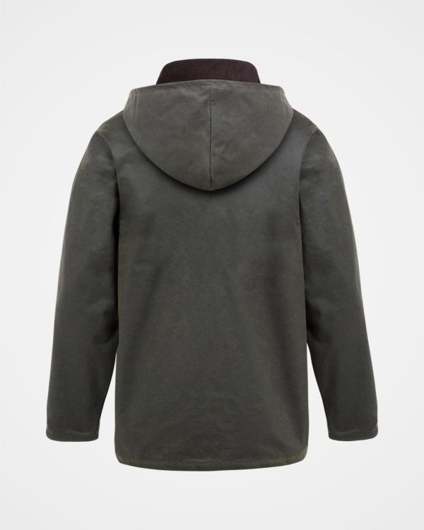 This premium waxed cotton jacket features a classic collared neckline with stylish corduroy contrast trim for timeless appeal. The removable hood adds practical versatility, making it perfect for everyday wear in changing weather conditions.