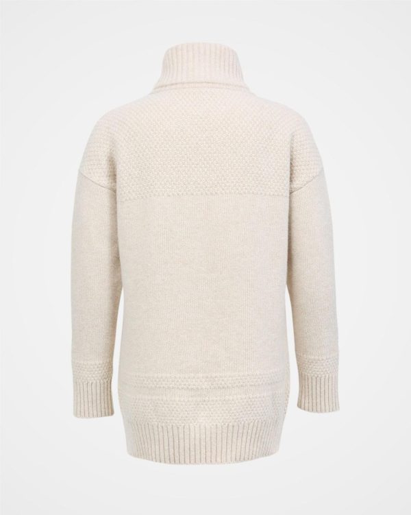 Experience exceptional comfort with our thoughtfully designed double-layer funnel neckline and relaxed drop shoulder silhouette. This longline sweater delivers cozy warmth with effortless style, while the artful textured stitching adds beautiful dimension to this timeless piece.