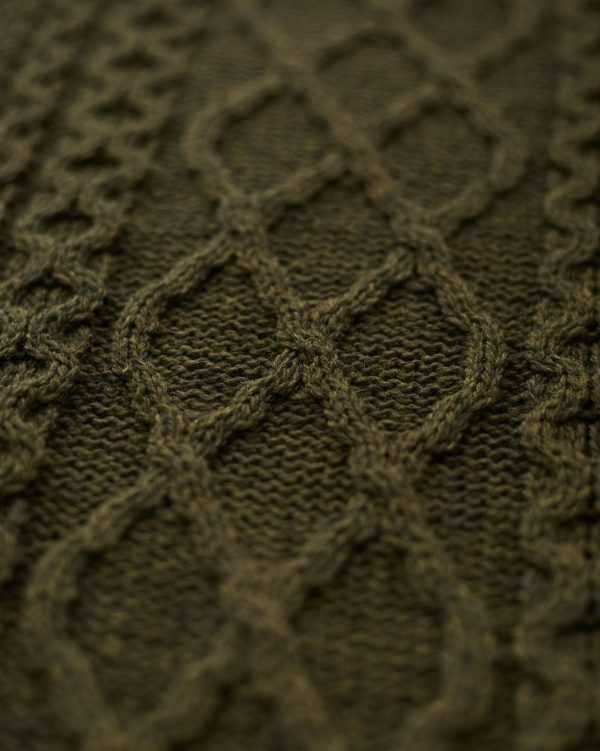 Expertly crafted in 100% Merino wool with a distinctive flecked oatmeal hue, this piece showcases exceptional textural appeal with substantial cable detailing throughout the center panel.